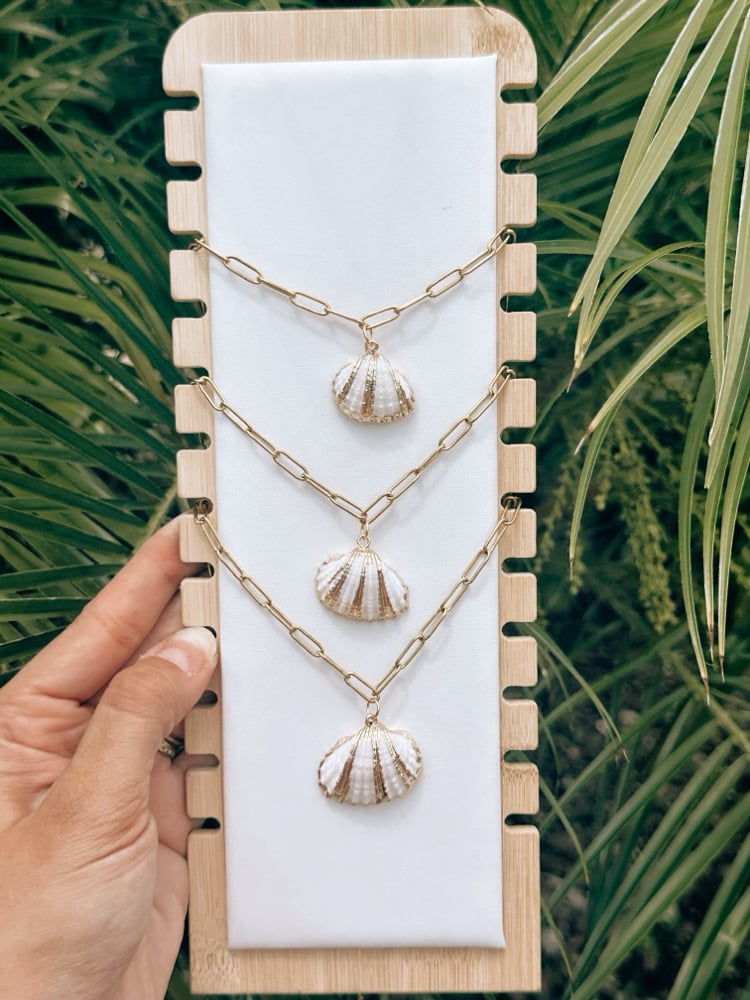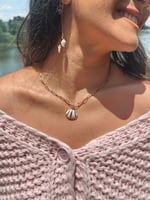 Our popular piece “Golden Shell”, with a little twist. Same charm, new boldness—this version brings a little more edge to your ocean glow.