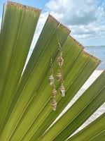 Show off your carefree summer vibes with our Triple Shell Drop—an 18K gold plated dangle featuring three real shells on each side that sway gently with every move.